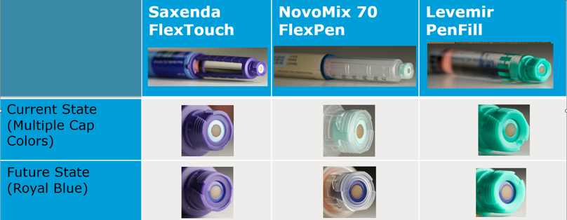 Pentru moment, produsul impactat în România de această schimbare va fi NovoMix Penfill 100U/ml, iar primele comenzi cu capac de culoare albastru regal vor sosi începând cu iunie 2024.